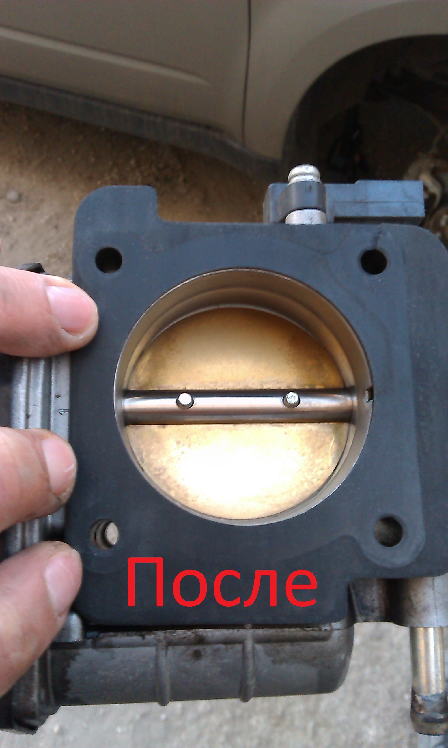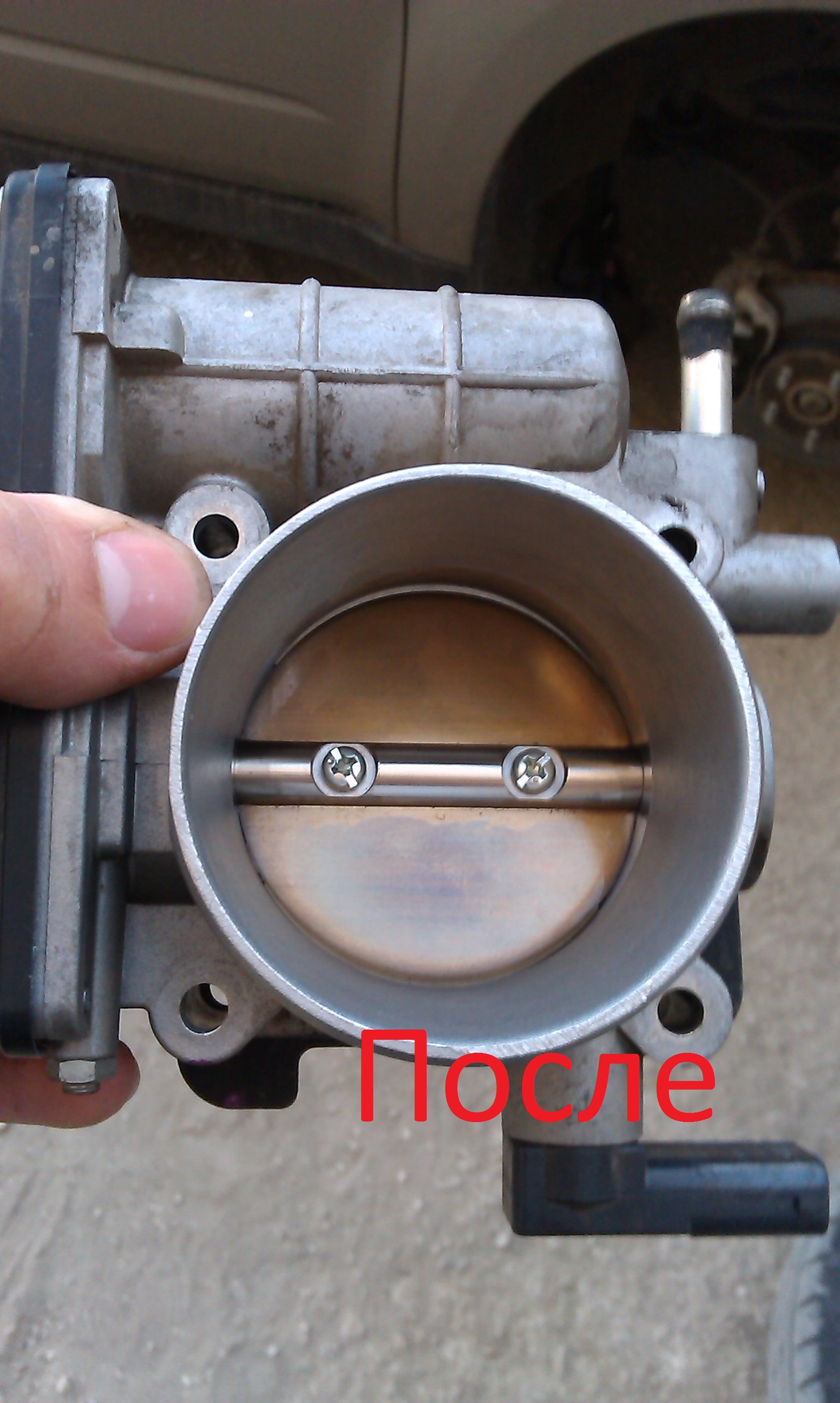 3) Давно напрягало то, что иногда когда заводишь машину, обороты резко падают, потом взлетают, начитался, что это может быть из за грязной дроссельной заслонки, решил и ее почистить. Мыл просто бензином, меня смущает что она чуток приоткрыта, подскажите пожалуйста так должно быть или это не нормально!?